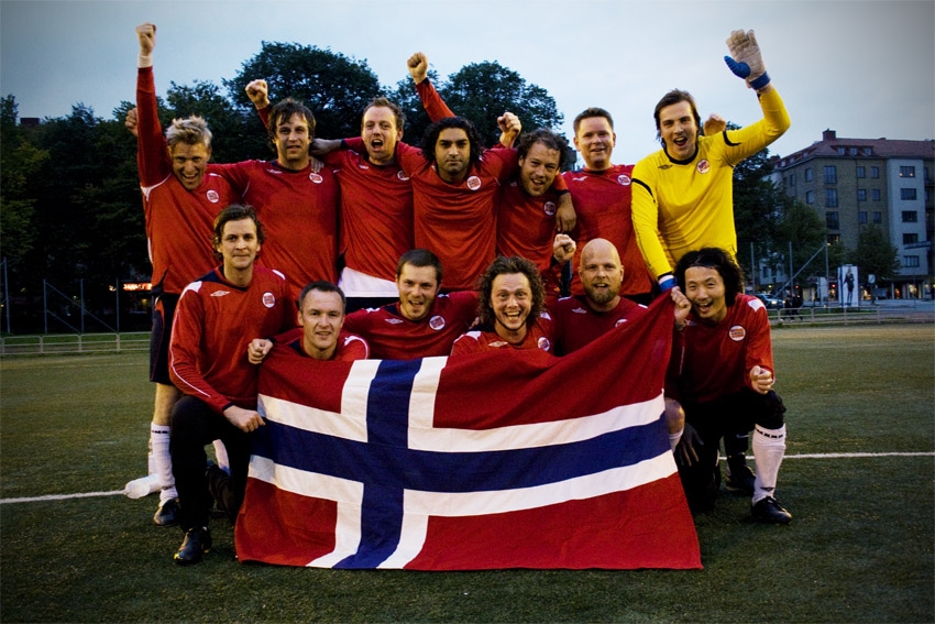 Norge – Sverige 2008. Bak fra venstre: Ola By Riise, Eirik Ingebrigsten, Stig Aasvik, Endre Ruset, Richard Aarø, Karl Ove Knausgård, Tormod Haugland, Nikolaj Frobenius, Steffen Sørum. Nede fra venstre: Thomas Marco Blatt, Oddmund Vaagsholm, Carl Frode Tiller, Espen Stueland, Bjørn Espen Almaas, Tomas Espedal, Gunstein Bakke, Ragnhild Trohaug, Agnar Lirhus.